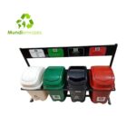 Las papeleras incluidas en este punto ecológico tienen unas dimensiones de 65 cm de alto, 28 cm de ancho y 38 cm de largo, con una capacidad de 35 litros cada una. Fabricadas en polietileno resistente, estas papeleras son duraderas y adecuadas para la recolección de una variedad de residuos, desde papel hasta plástico.