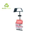 Las dimensiones de la estructura son de 100 cm de alto, 95 cm de ancho y 45 cm de largo, proporcionando un soporte estable para las papeleras y ocupando un espacio mínimo. La bandeja superior está marcada con un banner de acuerdo con el tipo de residuo a depositar, lo que facilita la identificación y el uso adecuado del punto ecológico.