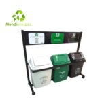 Material: Polietileno (papeleras), estructura metálica calibre 18, pintura electrostática color negro, bandeja superior marcada con banner de acuerdo con deposito.